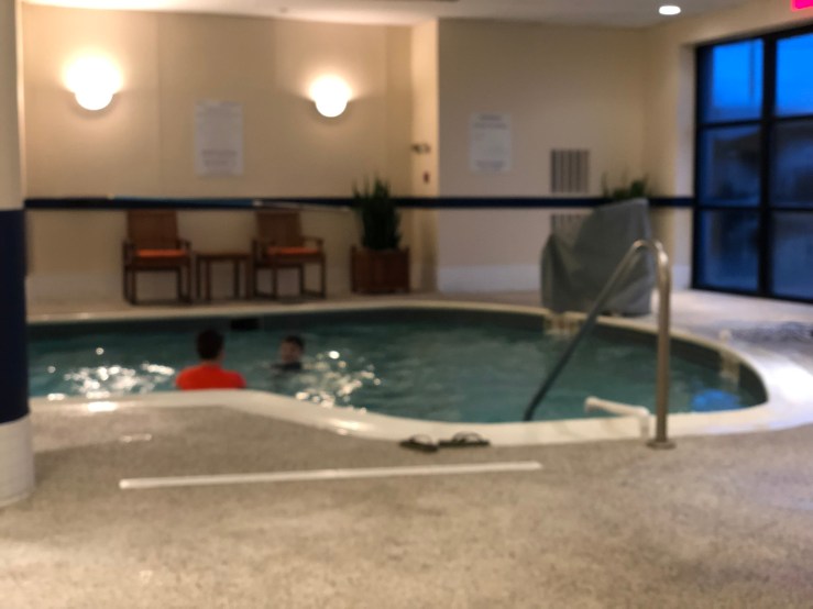 I stopped by the front desk on our way down to the pool and requested a rollaway bed so the boys would get a better night’s sleep. The boys played in the pool for about 2 hours with a couple other families that seemingly had a similar idea of staying in the hotel for the evening.