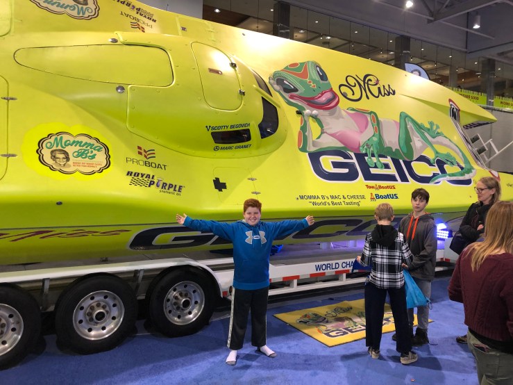 Every boat show is different. Some are bigger than others and we’re lucky the one we went to is fairly large. There are lots of things to see but since we aren’t actually shopping for a boat, we don’t need a plan to focus on certain types of boats. I generally let the kids choose which way to go. It isn’t always the most efficient path, but it certainly gets their energy out.
